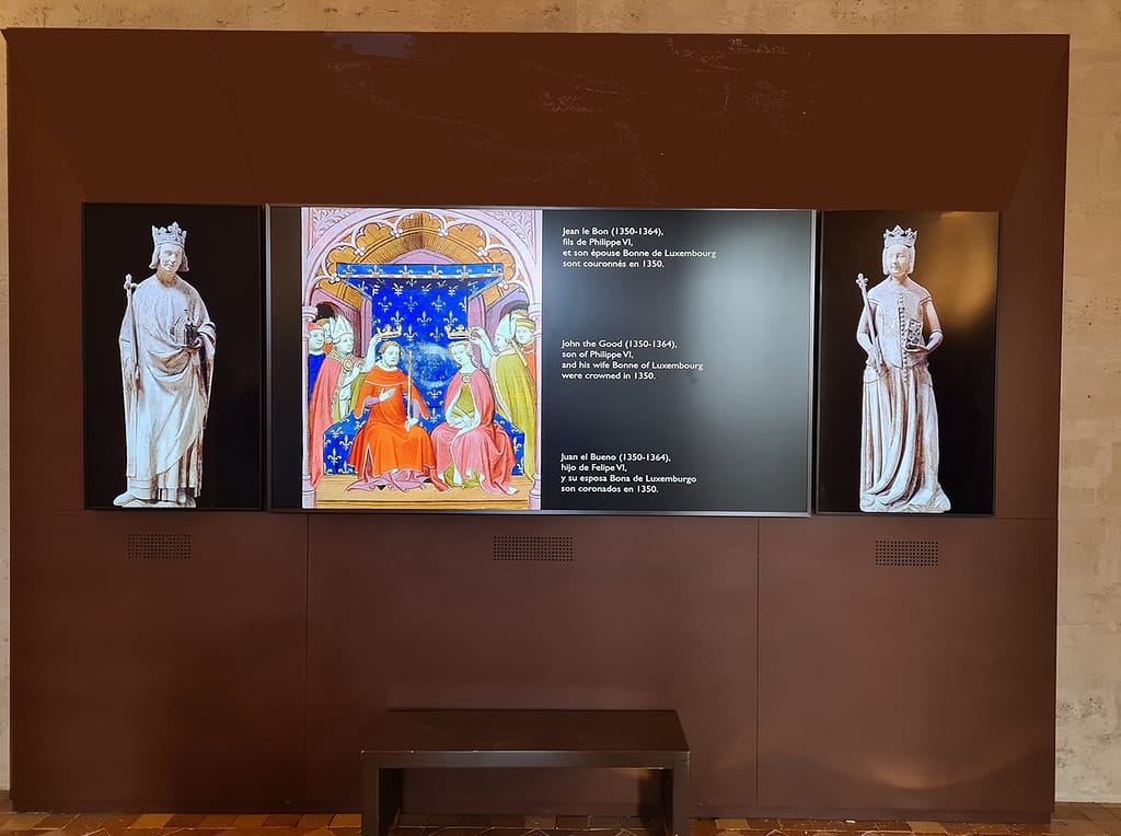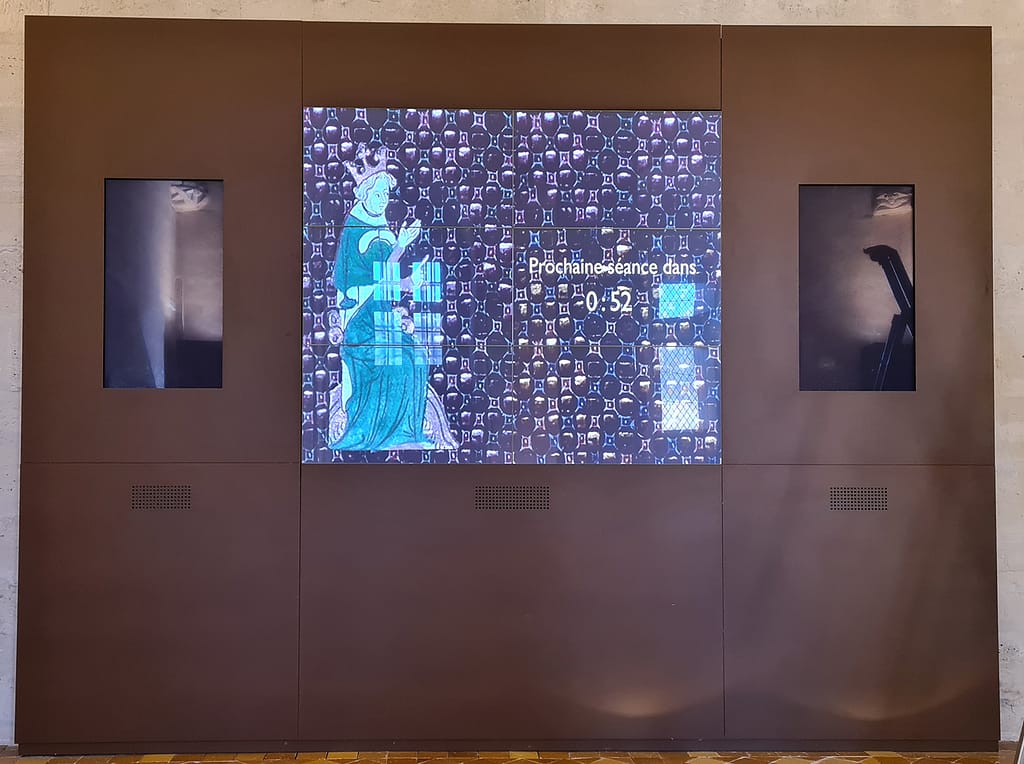 Nous réalisons tout type d’intégration. Ci dessous, configuration au Château de Vincennes où nous sommes intervenus pour remplacer un mur d’écrans format 4/3 obsolète (image de gauche). Le choix a été fait de le remplacer l’ancien serveur vidéo par trois lecteurs BRIGHTSIGN synchronisés et d’installer un grand écran en mode paysage accolé à deux écrans latéraux en mode portrait. Les écrans utilisés sont des SAMSUNG.
